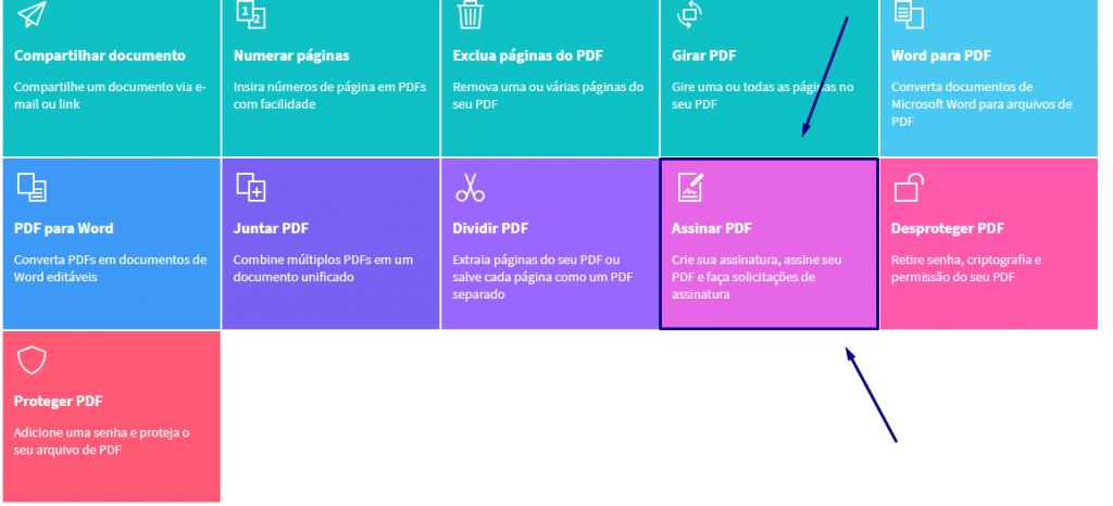 Acesse o site do SmallPDF e procure pela opção ‘ASSINAR PDF‘.