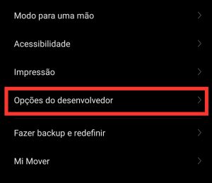 Agora você deverá acessar de fato as opções de desenvolvedor, para isso basta rolar até o final o menu de configurações ou buscar por “Opções de desenvolvedor”, “Modo Programador” ou apenas “Desenvolvedor”.