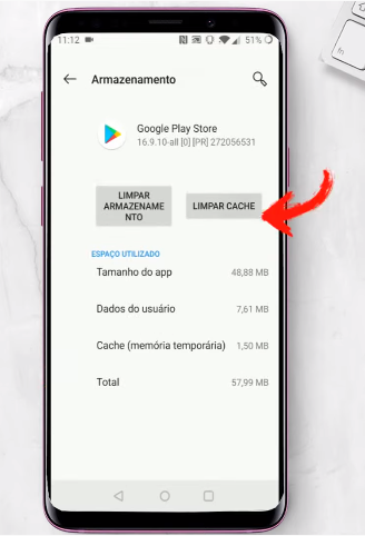 Após ter atualizado a loja você deverá acessar às configurações de seu smartphone > aplicativos > Google Play Store > limpe o cache > forçar parada.