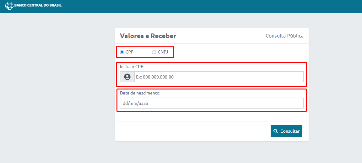 A verificação é gratuita e deve ser feita exclusivamente através da página oficial do Banco Central, canal seguro e liberado pela instituição para os cidadãos poderem consultar se há valores a serem ressarcidos mediante ao CPF ou CNPJ informado.