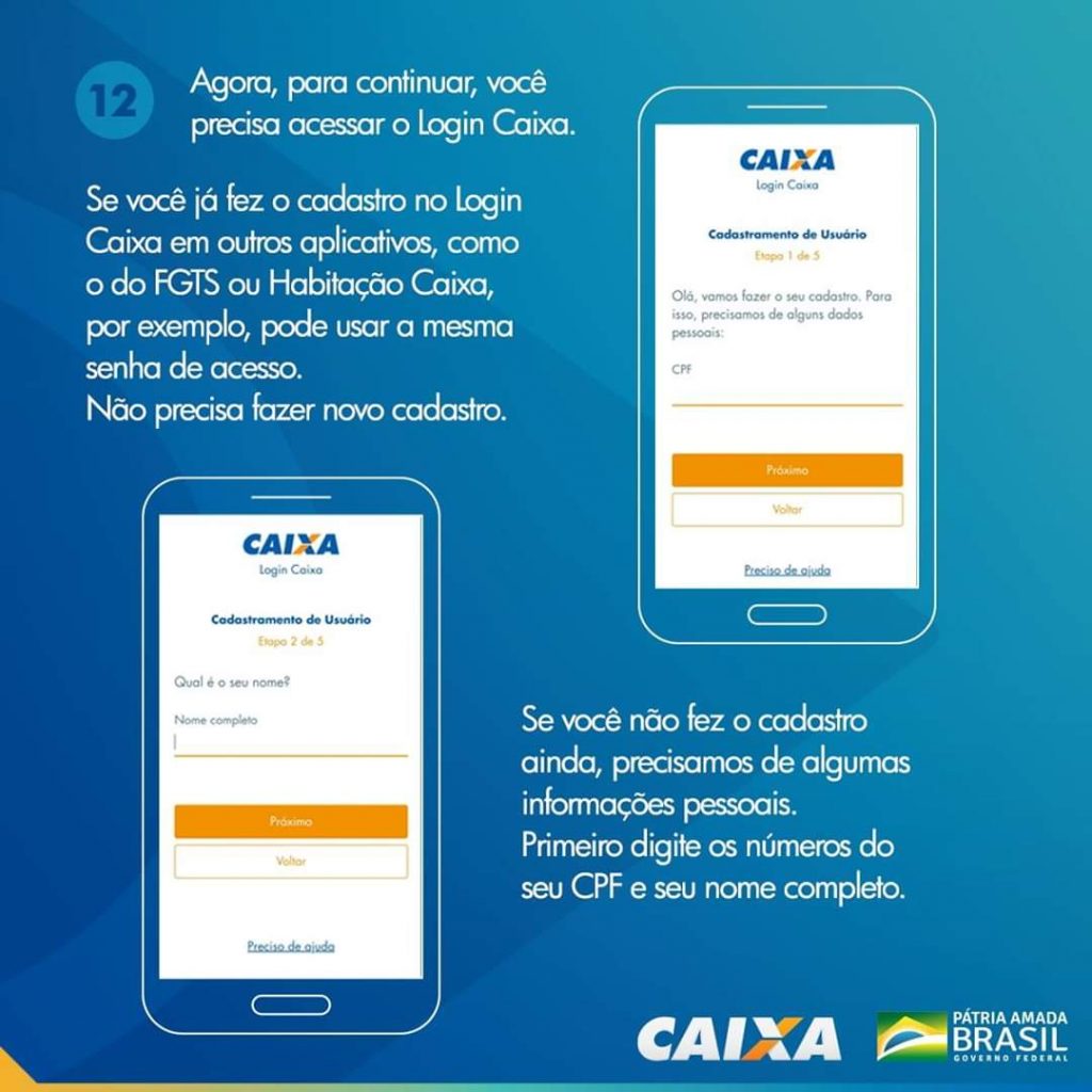 Se você já tem acesso ao login Caixa por estar cadastrado em outros programas sociais (como o FGTS ou Habitação Caixa, por exemplo) utilize a mesma senha de acesso. Caso contrário será necessário informais mais alguns dados pessoais.
