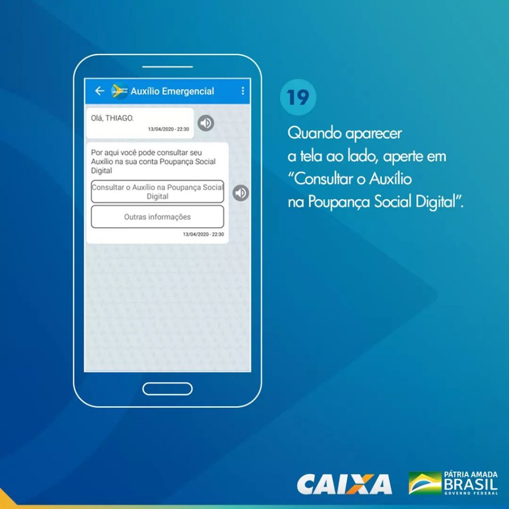 Agora todas às funções já estarão disponíveis para você utilizar. Para consultar seu auxílio toque sobre “Consultar o Auxílio na Poupança Digital“.