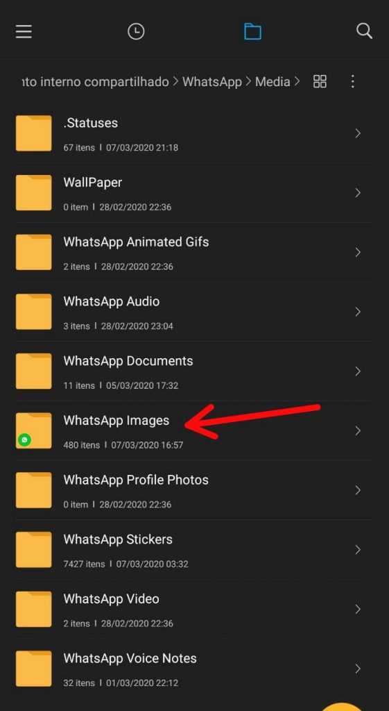 Agora navegue até a pasta do WhatsApp > Pasta .Statuses > selecione e delete.