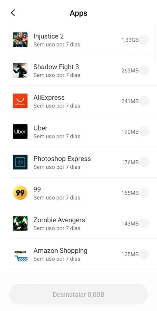 A partir do Android 8 é possível observar quais os aplicativos menos utilizados no aparelho e desinstalá-los de forma rápida. Para isso vá em: configurações > armazenamento > liberar espaço.