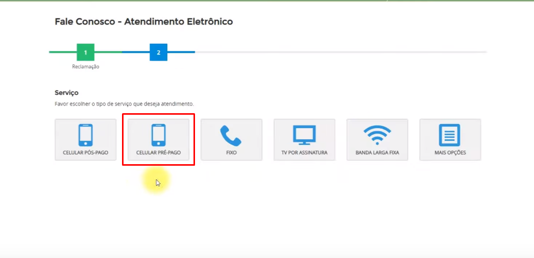 Para iniciar a reclamação basta tocar sobre ‘FALE CONOSCO’ > ACEITE OS TERMOS > REGISTRAR SOLICITAÇÃO > RECLAMAÇÃO > TELEFONIA MÓVEL > INICIAR REGISTRO > CELULAR PRÉ-PAGO.