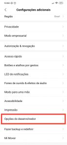 Feito isso, volte nas configurações e vá até Configurações Adicionais e selecione a Opção de desenvolvedor: