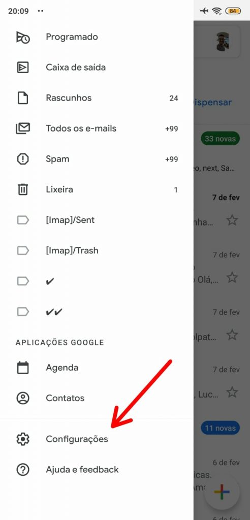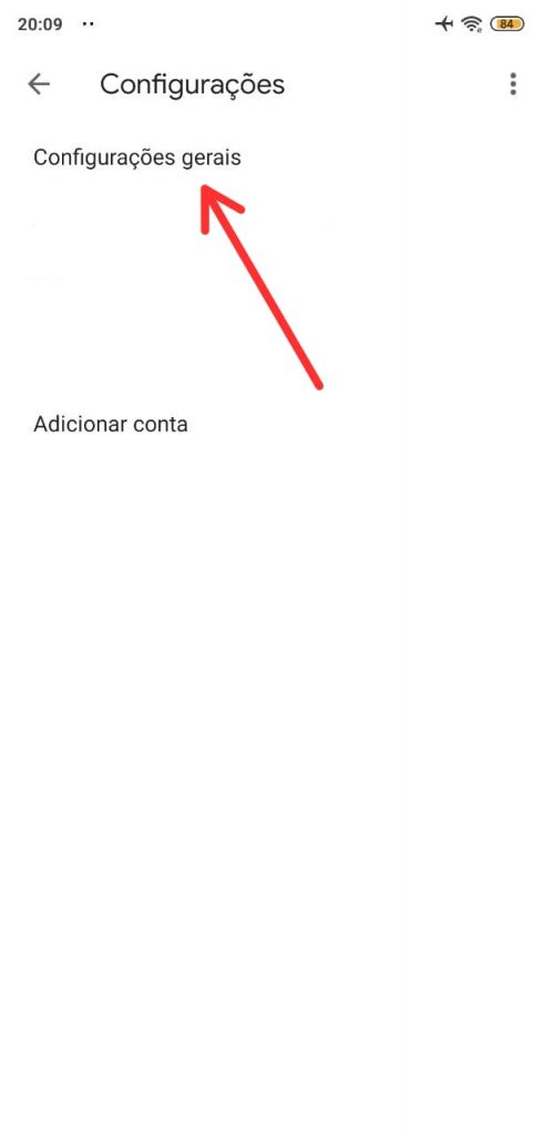 Primeiramente você deverá verificar se há atualizações disponíveis para o Gmail; caso haja, atualize. Em seguida você deverá abrir o aplicativo > acessar o menu lateral > configurações > configurações gerais.