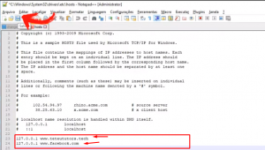 - Então digite o seguinte IP, solte um espaço e digite o site que deseja bloquear, exemplo; (127.0.0.1 www.teteututors.tech);