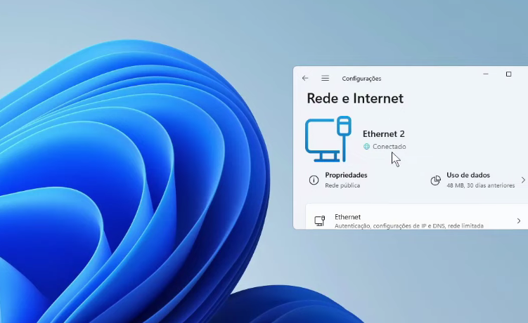 No seu computador, verifique o status de rede para consultar se há internet disponível no seu computador; nome exibido deve aparecer como “ETHERNET 2“.