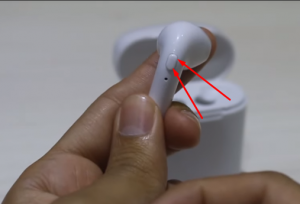 Passo 1: Você deverá remover os fones da sua caixinha de carregamento e certificar de que está carregados. Feito isso, você vai pressionar o botão do fone até que comece a piscar, faça isso nos dois: