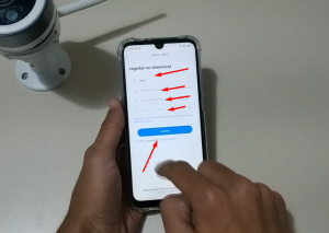 Passo 4: Faça login com sua nova conta criada e perceba que aparecerá para você adicionar uma câmera, e caso sua câmera não dizer nada, dê um RESET novamente para que comece a busca de rede (ficará bipando) e só então clique no ícone de “mais”: