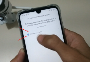 Perceba que você foi para uma página onde mostra o nome de seu WIFI, basta inserir a senha do seu WIFI e continuar. E na próxima página, aparecerá o ponto WIFI de sua câmera de segurança, então, clique nela: