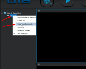 Quando abrir a interface de monitoramento, basta clicar com o botão direito sobre o nome de sua câmera (o mesmo nome criado no aplicativo) e clicar em iniciar monitoramento: