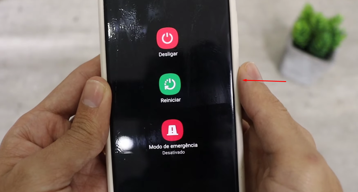 Outra forma de desativar o modo seguro é pressionar o botão power do seu dispositivo e em seguida tocar em ‘REINICIAR‘, dessa forma o celular ligará normalmente e sem essa função ativada.