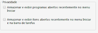 depois disso seu menu iniciar já estará menor, e se quiser você pode desmarcar as duas caixinhas, marcadas anteriormente.