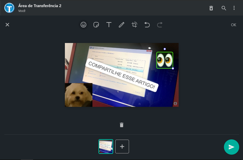 Essa novidade foi adicionada há alguns dias na versão web do mensageiro e permite que os usuários editem as imagens antes do envio, algo bem parecido com o que encontramos no aplicativo para smartphone.
