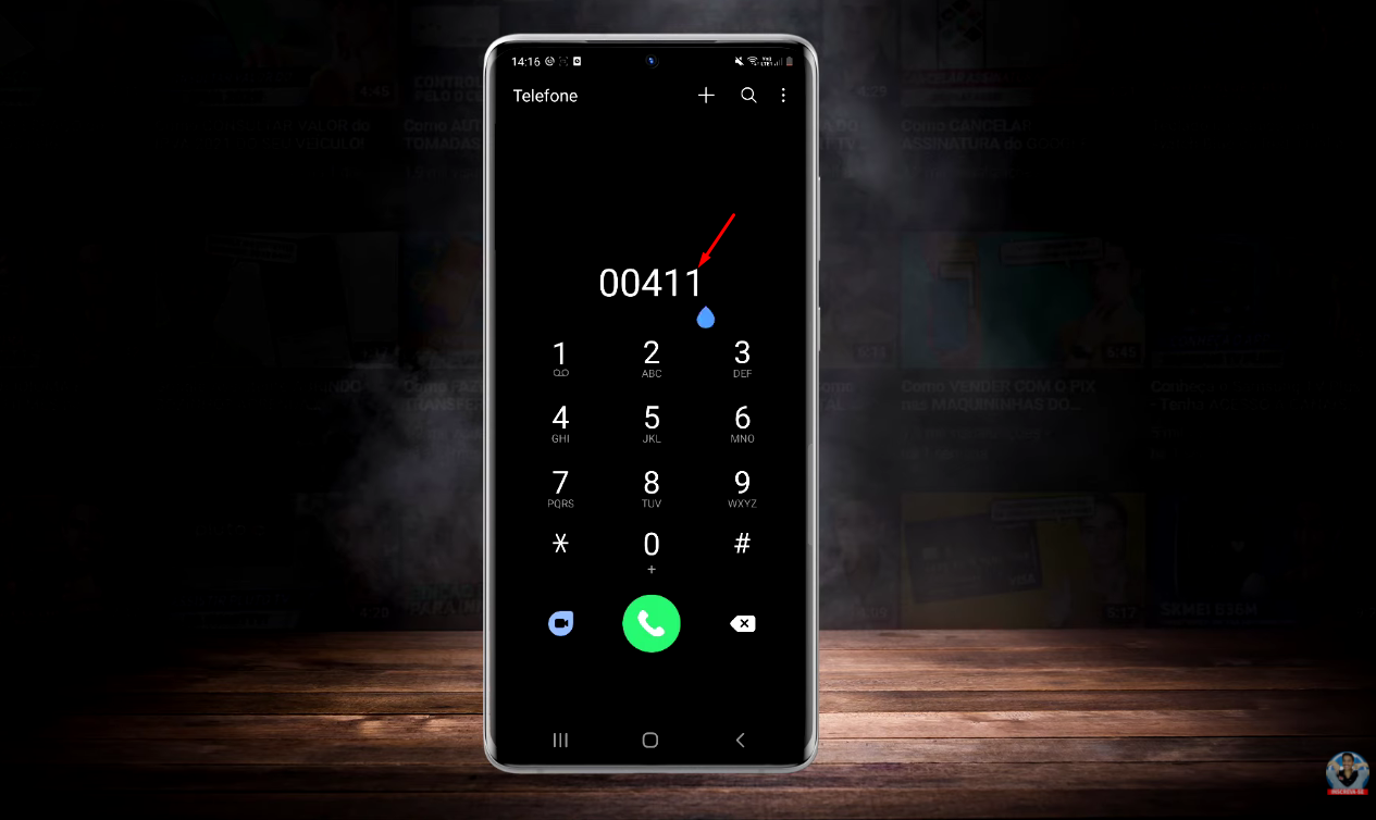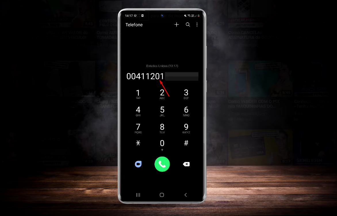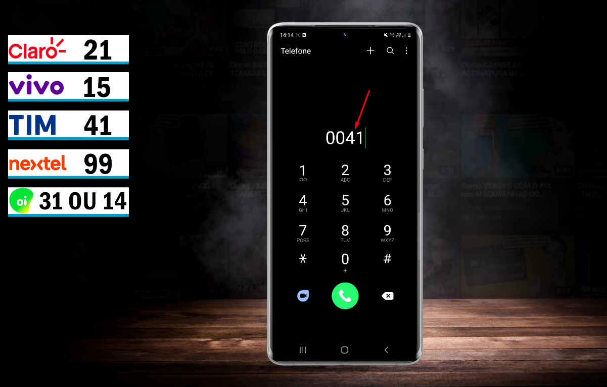 Em seguida abra o discador de chamadas do seu celular e insira os números 00+ código da sua operadora. Neste exemplo utilizaremos a TIM, por isso o telefone inicia com 0041.