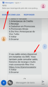 Agora, você vai esperar que uma mensagem seja enviada à você dizendo o quanto você tem de créditos.