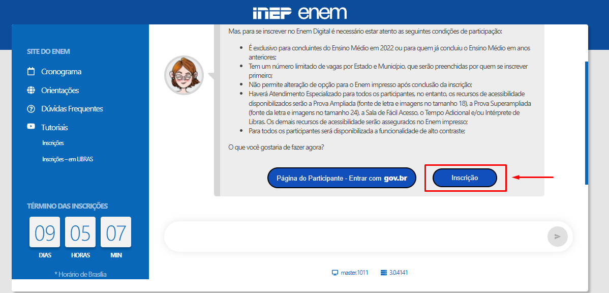 Primeiramente, abra a página do participante do INEP e leia todas as orientações de como participar da prova este ano, essas informações são importantes para evitar problemas com o cadastro em caso de descumprimento de alguma norma.