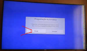 Na janela que aparecer, provavelmente vai aparecer a opção de iniciar a busca de canais, então, clique em Iniciar e aguarde que os canais apareça.