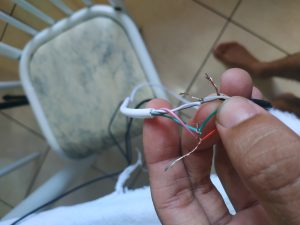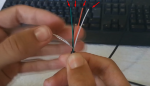 - Descascar o fio preto ou branco até que apareça os 4 cabos internos;