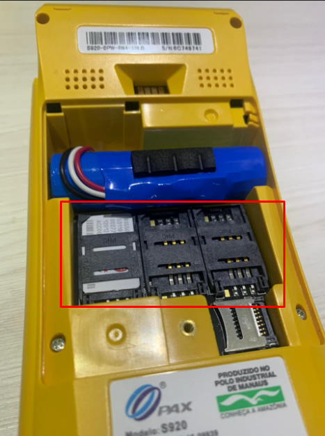 Na parte traseira da sua Moderninha Pro localize o parafuso que prende a tampa traseira, em seguida utilize a chave de fenda para removê-lo. Tendo feito isso será possível acessar o compartimento dos chips, que ainda utilizam o padrão antigo.