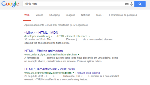 Quando o usuário digita a expressão “blink html”. A palavra “blink” significa “piscar” em português, quando buscada no Google todas as expressões “blink html” do resultado começam a piscar!