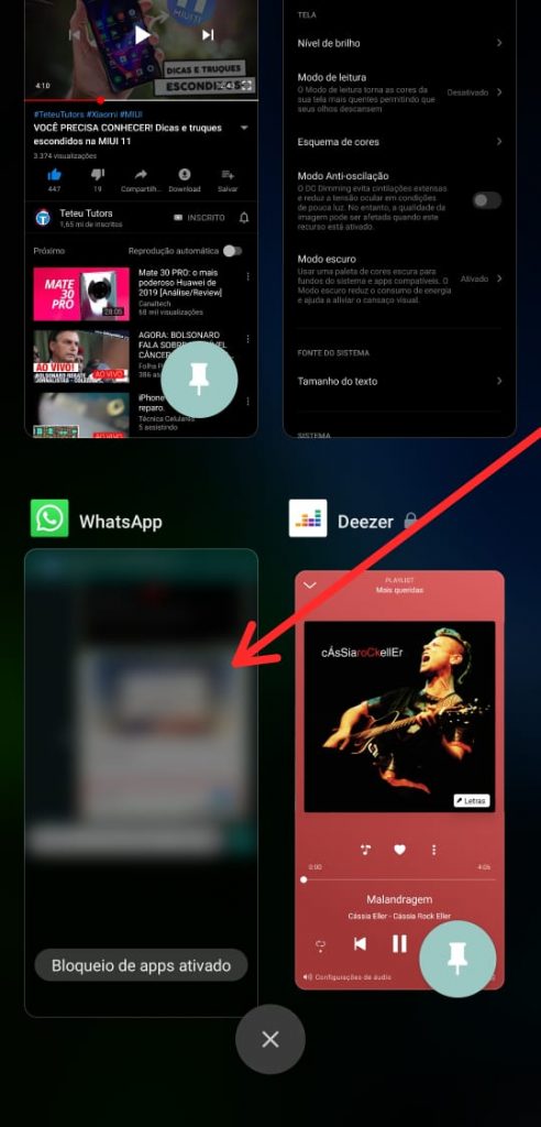 Um dos problemas de privacidade que está presente na MIUI 10 e que foi corrigido na versão 11 é a possibilidade de visualizar o conteúdo dos aplicativos que estão sendo executados em segundo plano. Para mudar isso vá em: configurações > Tela inicial > Desfocar prévias de apps > Selecione os apps a serem desfocados.