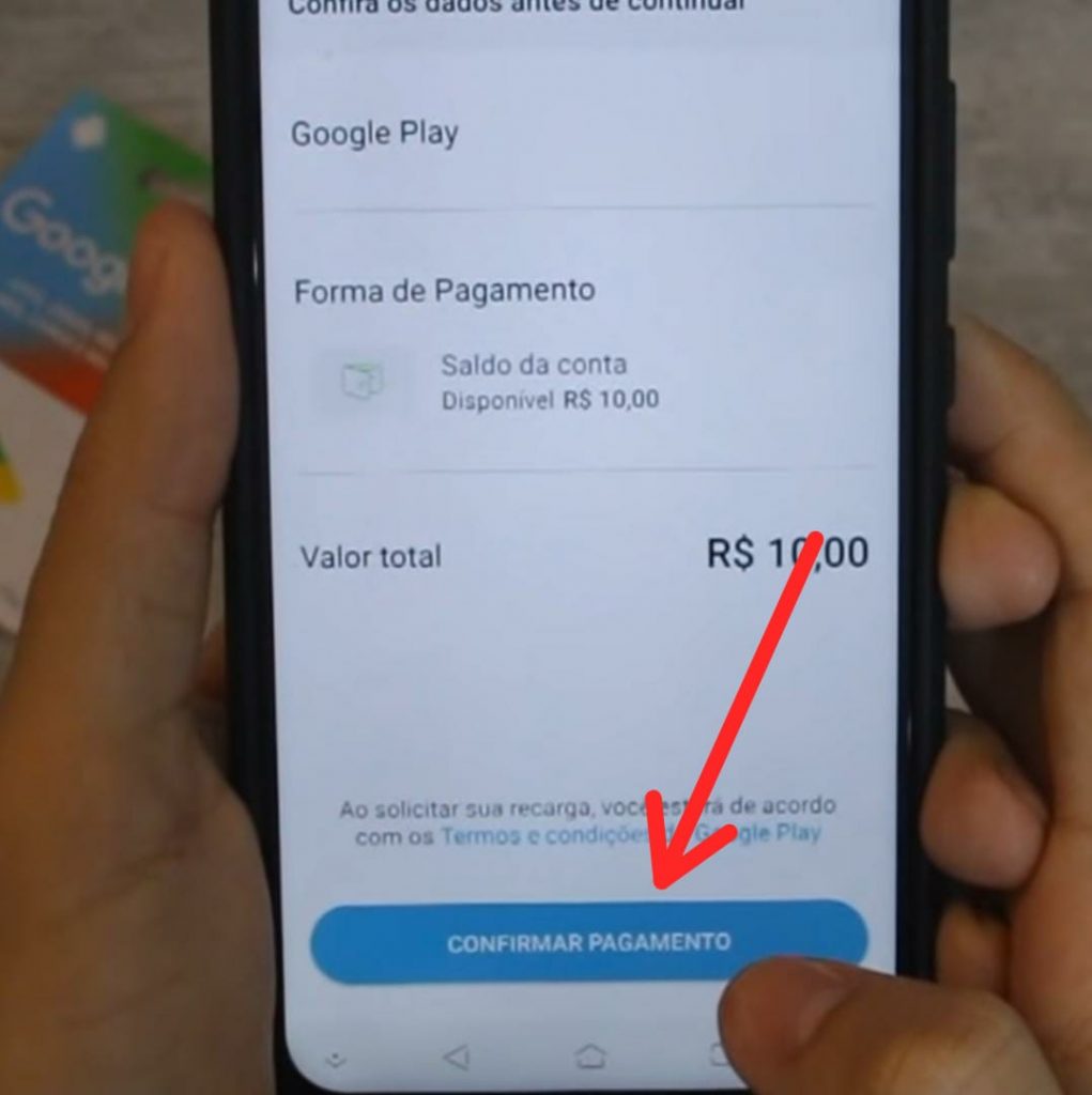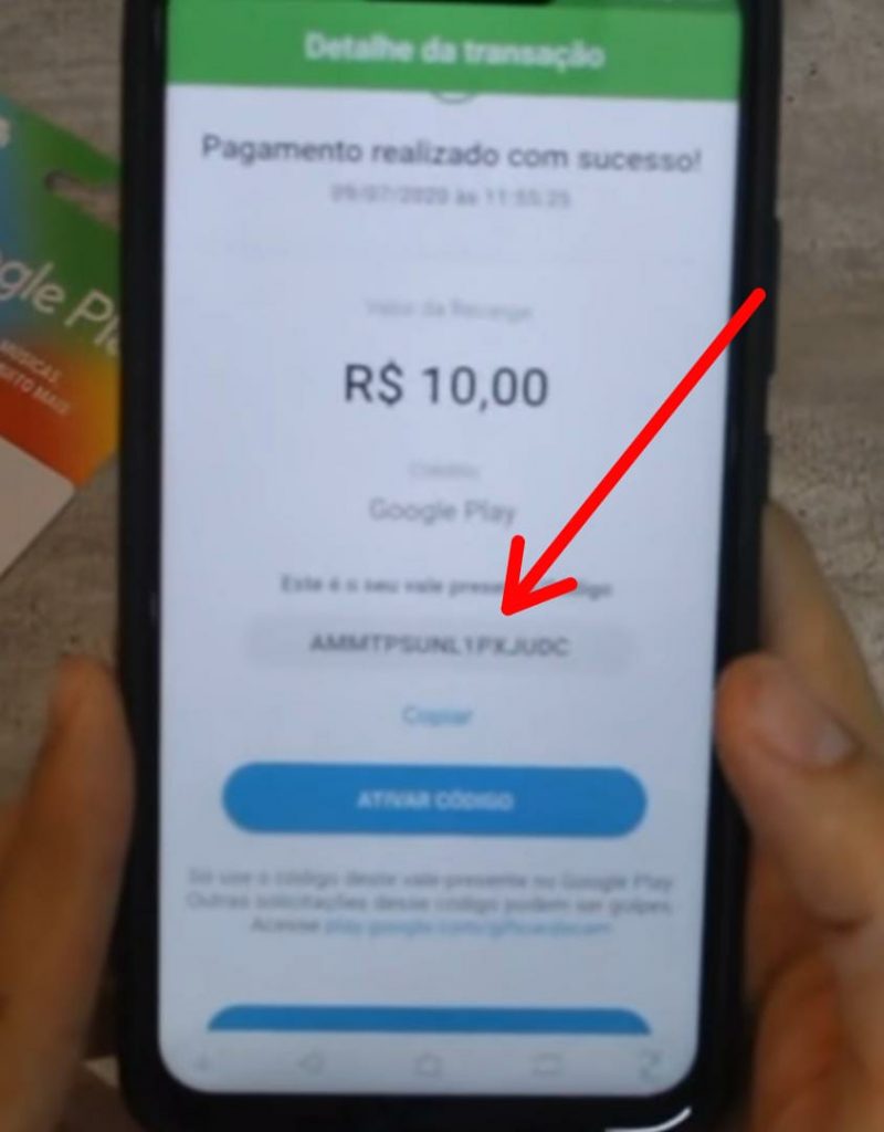 Por fim, confirme o pagamento e aguarde a verificação do token de segurança. Em seguida basta copiar o código do cartão-presente que será gerado e resgatar na Play Store.
