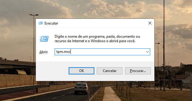 Utilizando o teclado pressione as teclas ‘Windows + R‘ e em seguida você verá uma janela pop-up. Pesquise por “tpm.msc” e toque em ‘OK’.