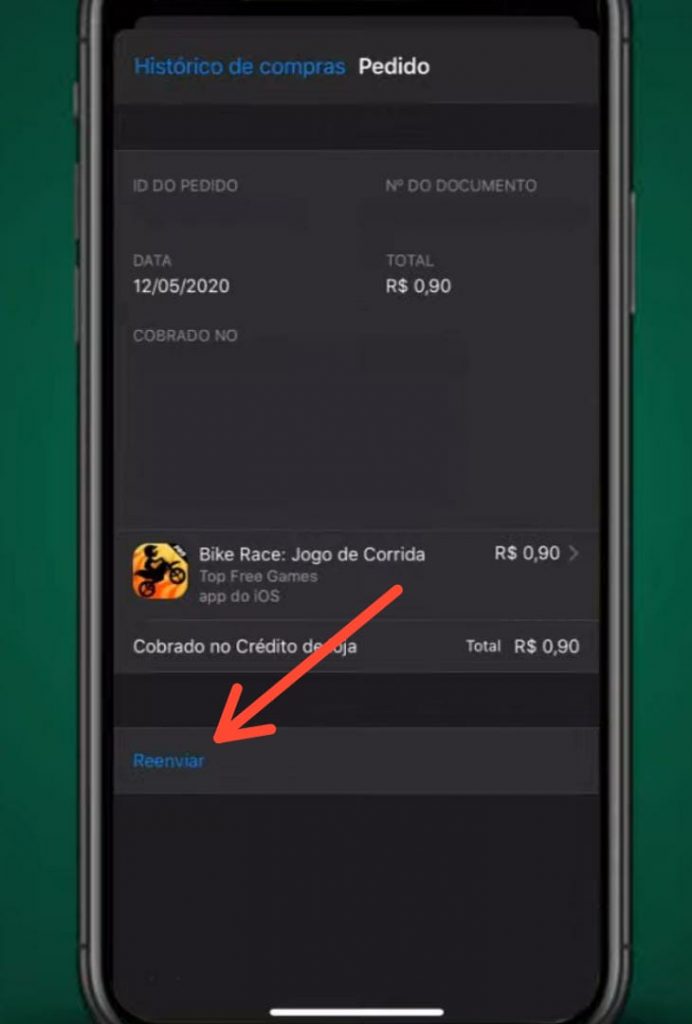 Tendo feito isso vá até ‘ID Apple‘ > Histórico de compras > Selecione o app > Reenviar.