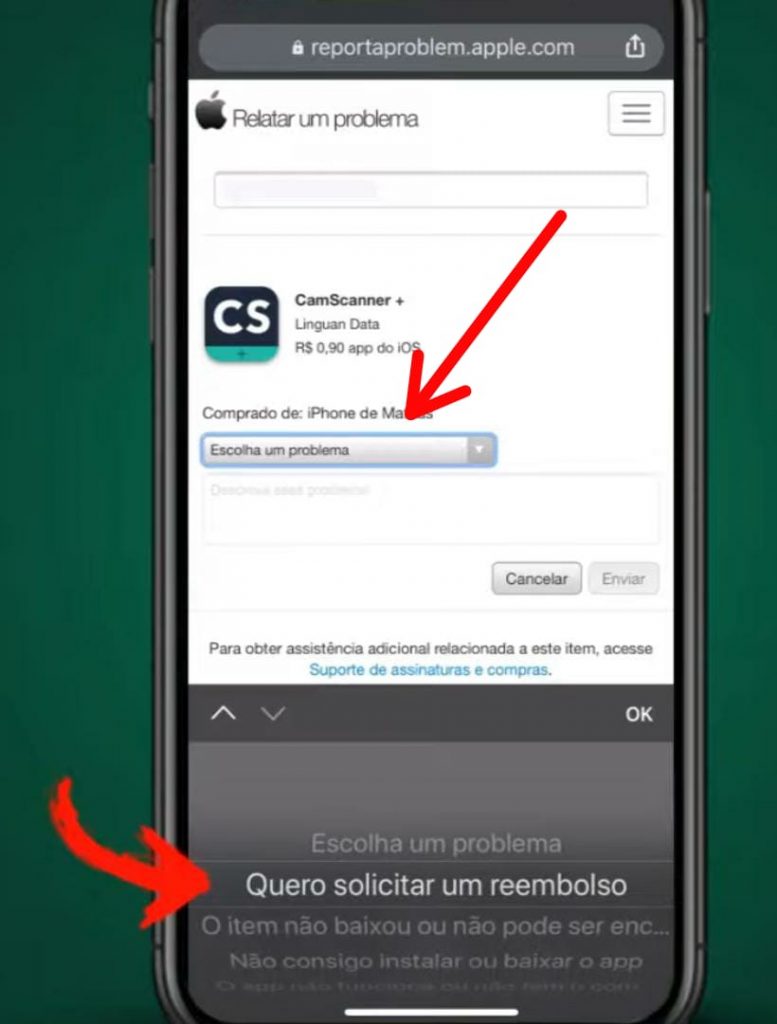 No recibo de compra toque sobre a opção ‘Quero relatar um problema’ e em seguida faça login com sua conta Apple.