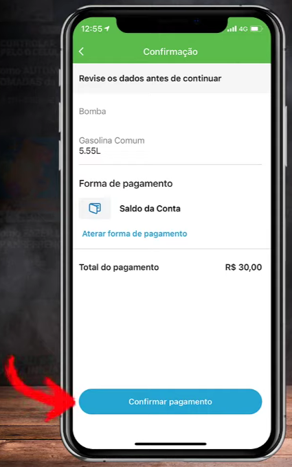 No aplicativo do PagBank você deverá autorizar o abastecimento antes que o frentista retire a mangueira da bomba. Para autorizar toque sobre ‘COMEÇAR ABASTECIMENTO’ e em seguida insira o código da bomba.