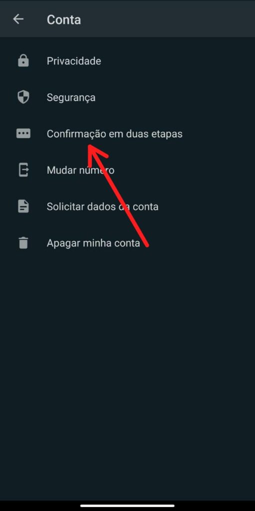 2. Siga até a aba de ‘CONTA‘ e posteriormente pressione sobre ‘CONFIRMAÇÃO EM DUAS ETAPAS‘;