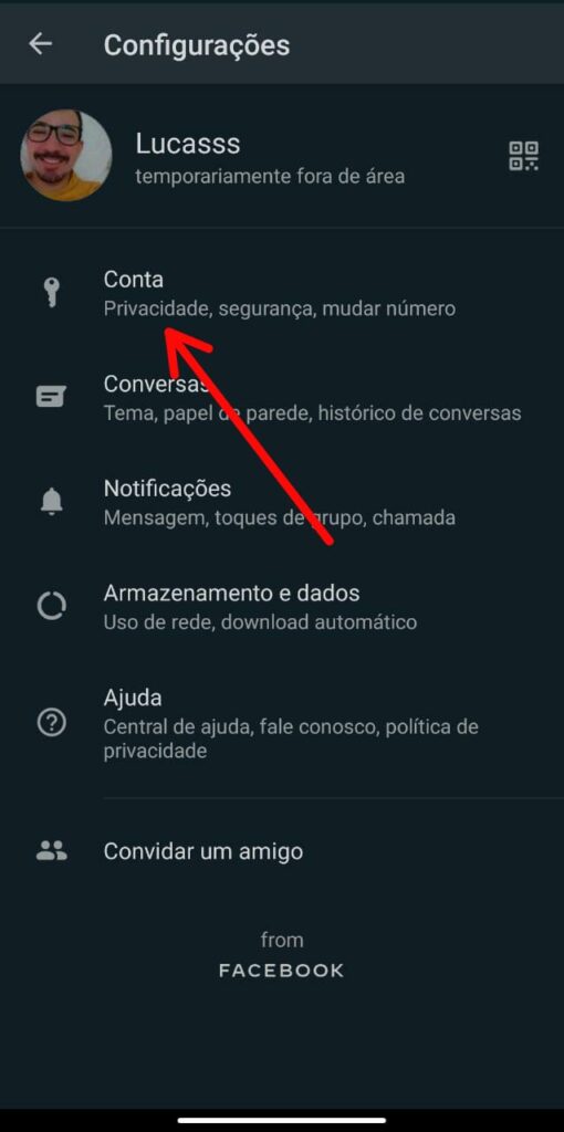 1. Abra o aplicativo do WhatsApp e toque sobre os três pontos no canto superior direito, em seguida vá até a opção de ‘CONFIGURAÇÕES‘;