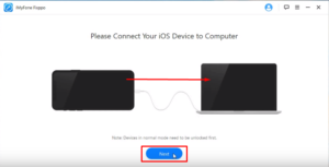 Após isso, CONECTE seu iPhone no USB e plugue em seu PC, e em seguida é necessário apenas que você clique no botão Next, para assim, dar sequência na solução do problema: