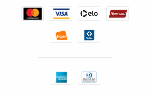 CRÉDITO: Visa, Mastercard, Diners, American Express, Hipercard e Elo