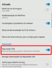 - Finalize marcando a caixinha Depuração USB;