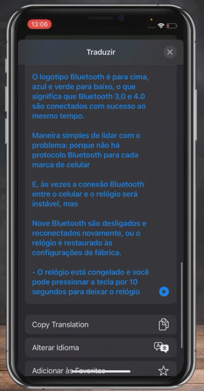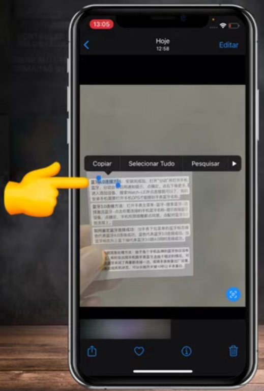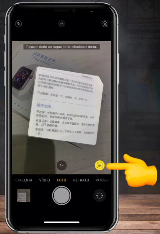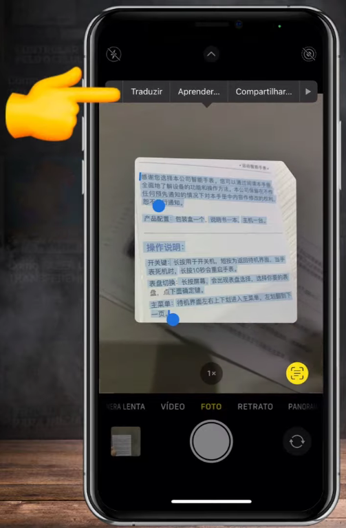 Aponte a câmera do seu iPhone para o texto e posteriormente toque sobre o botão que aparecerá no canto inferior direito e selecione o texto a ser traduzido. Por fim, na barra de opções toque sobre ‘TRADUZIR‘.