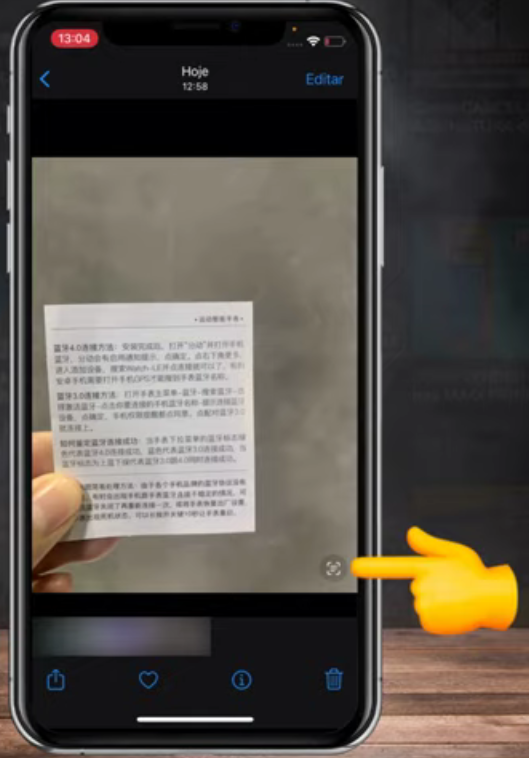 Abra a galeria do seu iPhone e selecione a imagem com o texto que deseja traduzir, em seguida toque sobre o ‘ÍCONE DE TRADUÇÃO‘ presente no canto inferior direito e selecione o texto contido na foto.