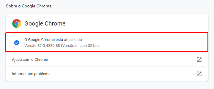 Logo em seguida você verá a mensagem ‘O Google Chrome está atualizado’ ou a opção para efetuar o download do update, caso esteja disponível.