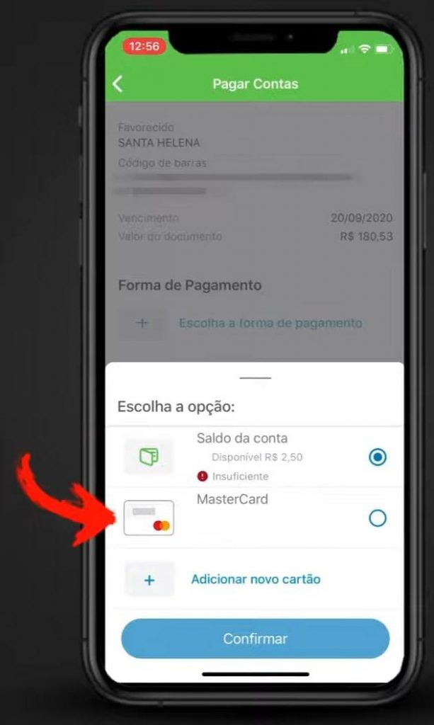 Para adicionar um novo meio de pagamento toque em ‘ADICIONAR NOVO CARTÃO‘.