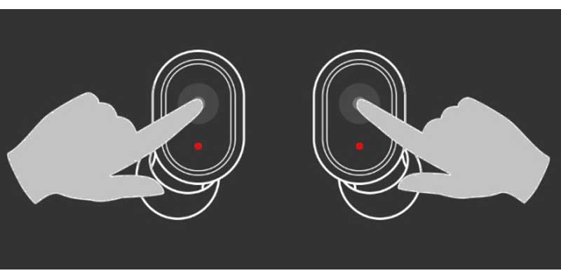 Agora, aperte simultaneamente o botão presente em cada fone, mantenha-os pressionados até que uma luz VERMELHA pisque por duas vezes e em seguida pisque uma COLORIDA.