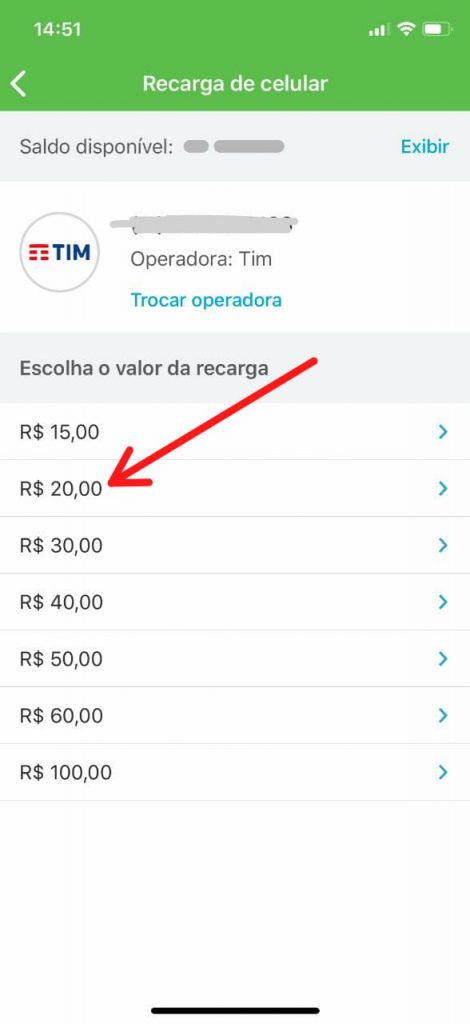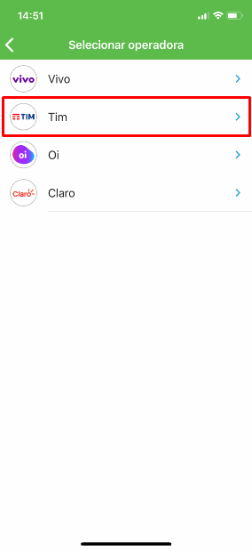 Agora selecione sua operadora. Lembrando que para obter o bônus é preciso possuir um Tim CHIP e colocar no mínimo R$ 20,00 em créditos.