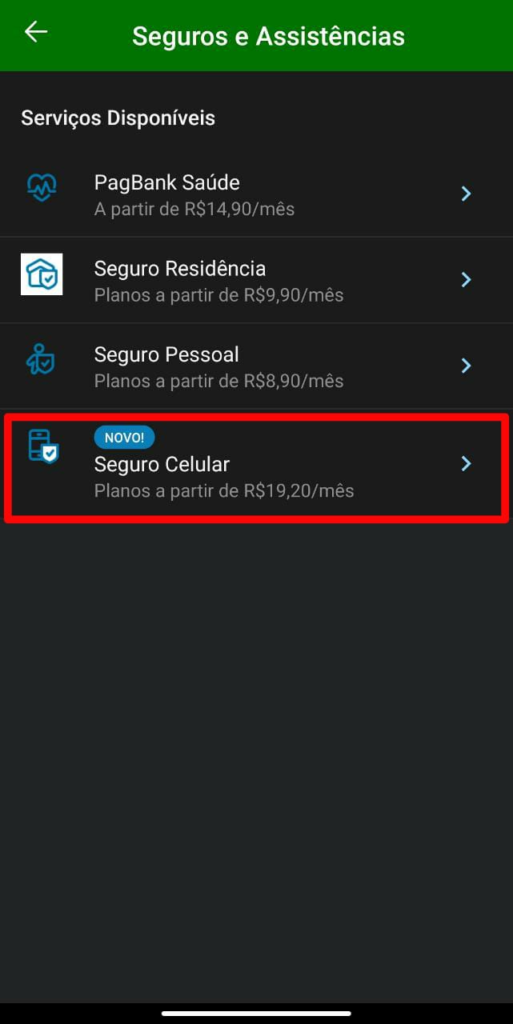 O PagBank anunciou recentemente um novo seguro no aplicativo, permitindo que os usuários contratem um seguro para o smartphone, permitindo proteger o aparelho em caso de roubo, quedas acidentais ou derramamento de líquidos, sendo uma alternativa interessante para quem mora em locais de risco ou possui um celular caro.