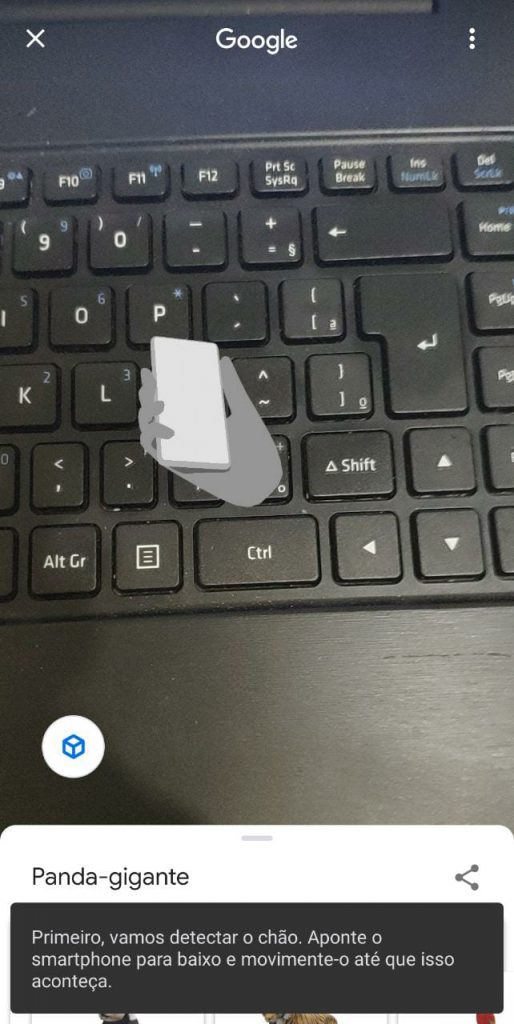 Por fim, basta apontar a câmera do seu celular para o chão e aguardar que o software identifique. Logo em seguida você já verá o animal em 3D.