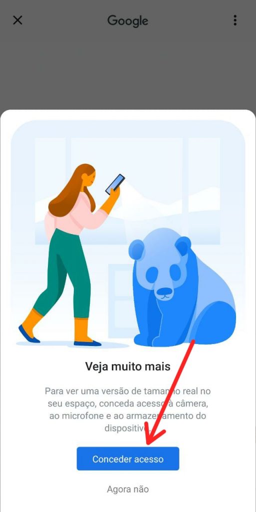 Para ver no seu ambiente toque sobre ‘Veja no seu espaço‘ e em seguida conceda acesso ao seu armazenamento. É permissão é necessária para que seja possível salvar os vídeos e fotos da animação 3D.