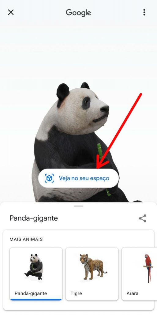 Primeiramente abra a barra de pesquisa do Google e procure por um dos animais disponíveis. Neste artigo utilizaremos o Panda-gigante como exemplo.