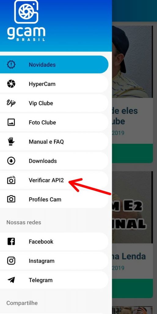 Abra o GB Clube e acesse o menu lateral, em seguida toque sobre ‘Verificar API2‘, nesta página será possível identificar às funções disponíveis em seu smartphone e se a CâmeraAPI2 está habilitada.
