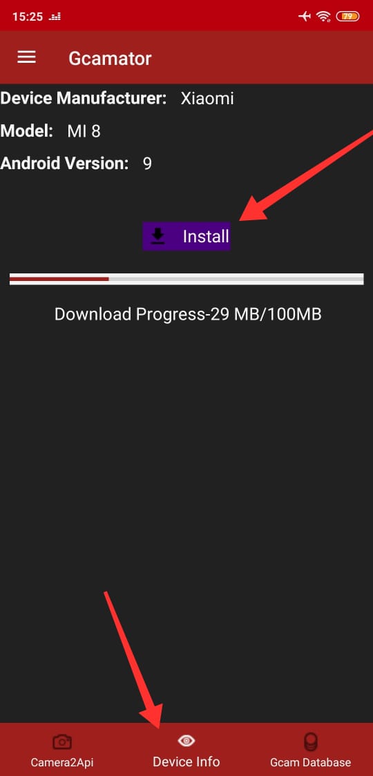 Para baixar a GCam toque sobre ‘Device Info‘, nesta opção o app identificará a marca e modelo de seu smartphone e disponibilizará a versão correta para download.